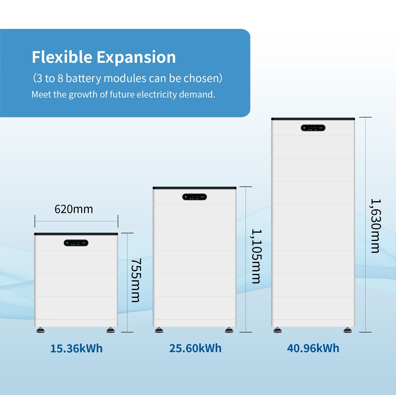| Rated Energy (kWh) | 15.36kWh | 20.48kWh | 25.60kWh | 30.72kWh | 35.84kWh | 40.96kWh |
