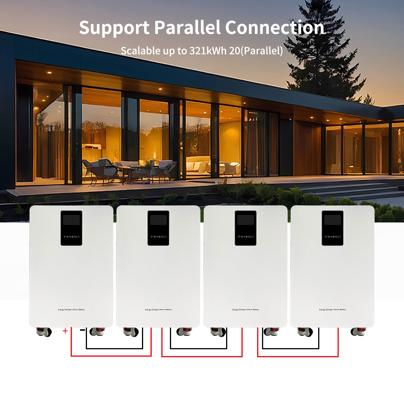 16 kWh per unit with the ability to connect up to 20 units in parallel, providing scalability up to 320 kWh, perfect for medium larger storage energy needs.